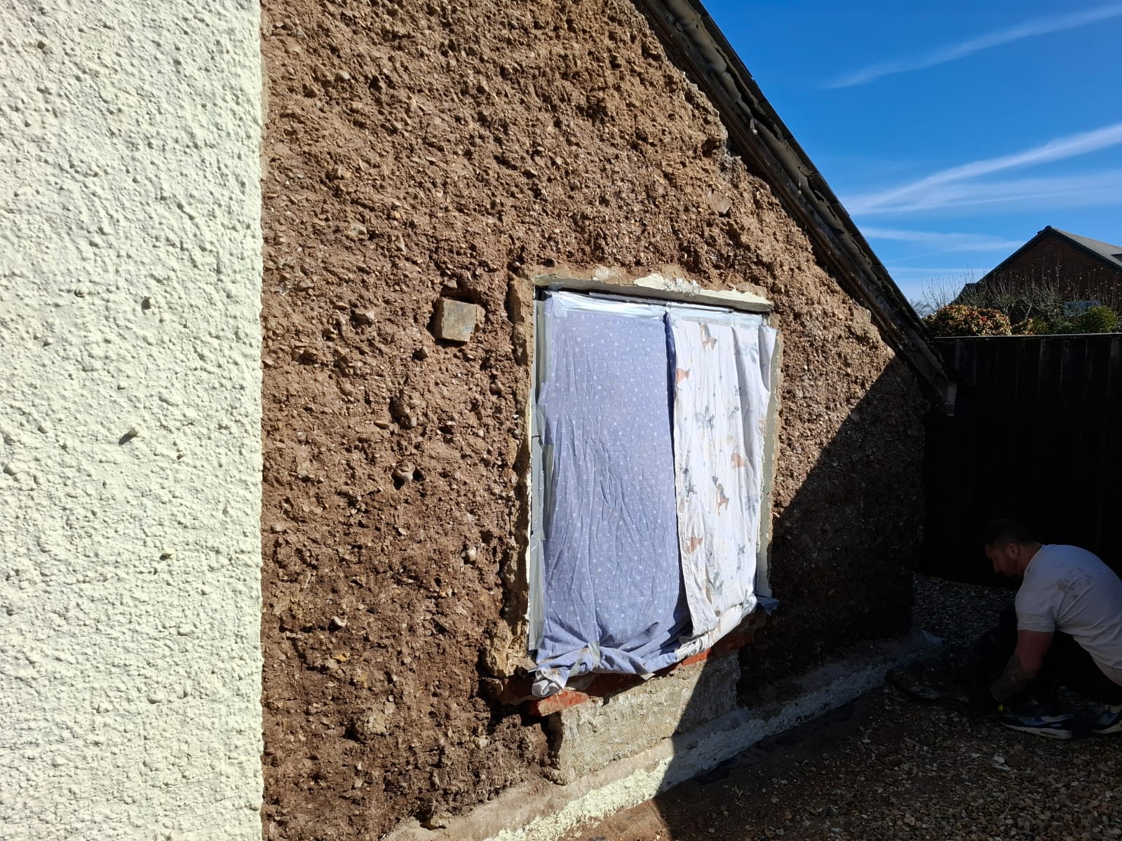 Cement Render Removed From Cob Wall And Replaced With Lime Render